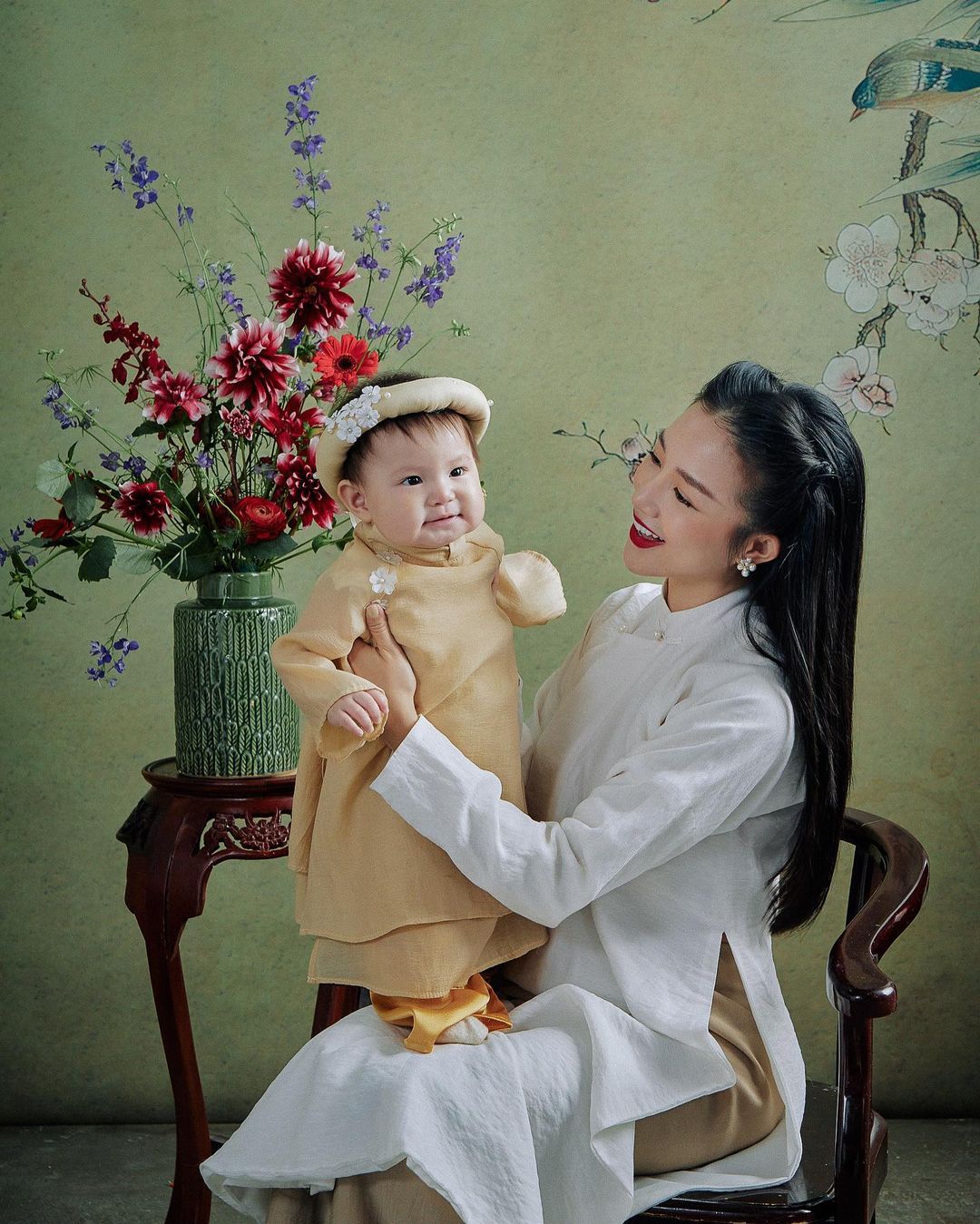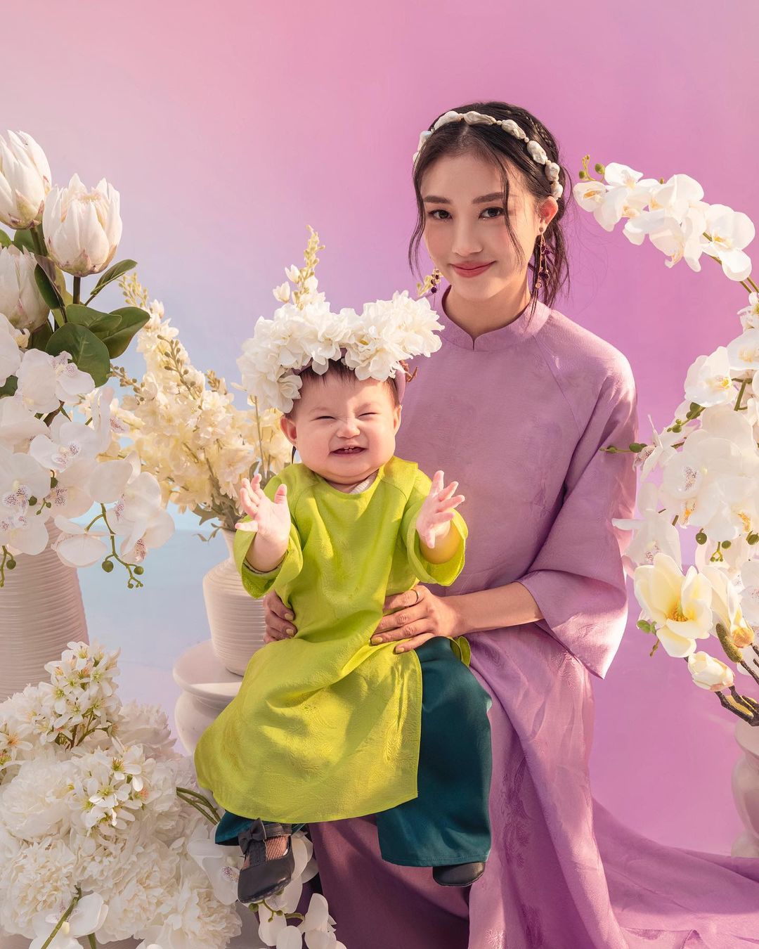 Tết Nguyên đán năm 2023, Pam Iu Ơi cũng khiến dân tình ''rụng tim'' khi lần đầu diện áo dài Tết. Idol 1 tuổi rưỡi cùng mẹ diện thiết kế áo dài đôi màu vàng đến từ nhà Hà Cúc để đón xuân. Năm nay, chị em vẫn có thể tìm mua mẫu áo dài Dư Niên này tại Hà Cúc để diện Tết cùng bé.