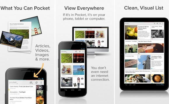 Internet là một không gian rộng lớn và rất khó để bạn bắt kịp với những gì xảy ra trên Internet mỗi ngày. Pocket giúp bạn lưu lại thông tin hoặc video hay để xem khi rảnh rỗi. Bản cập nhật mới của Pocket còn cho phép bạn lưu lại những đoạn thông tin từ mọi trang web. Với Pocket, bạn chỉ cần truy cập một ứng dụng để có thể nắm được mọi thông tin trên mạng.