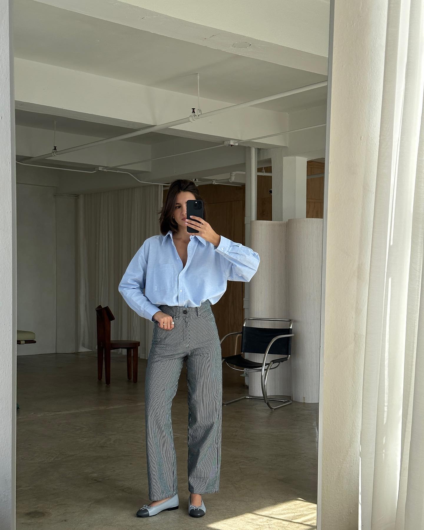 Cứ sang đến mùa hè, những chiếc áo sơ mi màu xanh nước biển lại phủ sóng phong cách của các quý cô sành điệu. Mẫu áo này được yêu thích vì sự trẻ trung, ngọt ngào và còn mang đến cảm giác "mát mắt" trong thời tiết nóng nực của mùa hè. Tủ đồ của phụ nữ Pháp cũng không thể thiếu vắng những chiếc áo sơ mi tông xanh nước biển. Họ kết hợp áo sơ mi xanh nước biển với quần âu ống suông, quần jeans ống loe để tạo nên những bộ trang phục thanh lịch, sang chảnh.