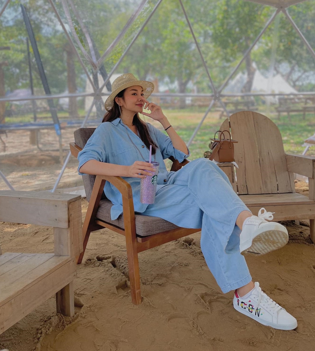 Giày sneaker trắng luôn được đánh giá cao ở sự trẻ trung, năng động. Đây cũng là kiểu giày "phủ sóng" phong cách của Phạm Thanh Hằng. Không chỉ mang đến hiệu quả "hack" tuổi, giày sneaker trắng còn có sự trang nhã, thanh lịch và giúp cân bằng tổng thể trang phục.