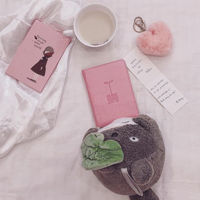 Không dừng lại ở đó, tủ phụ kiện của cô nàng thị phi nhất nhì showbiz Việt cũng không thiếu những món màu hồng. Từ túi xách, balo, khuyên tai, dép lê tới cả những món văn phòng phẩm đại loại như bút viết, sổ tay, bao da hộ chiếu hay móc khóa của Angela Phương Trinh cũng đều được phủ kín một tông màu mộng mơ như thế này.