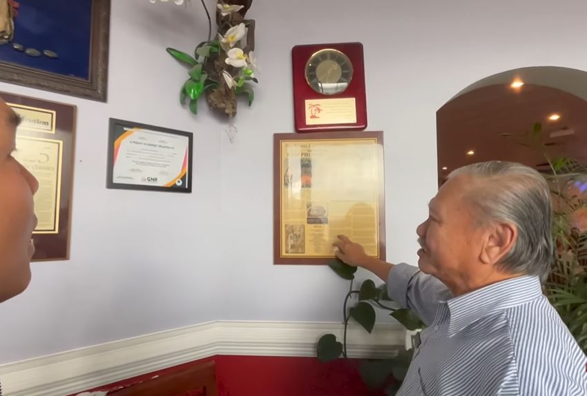 Cạnh đó, ông cũng khéo léo khoe những chứng nhận “Nhà hàng tốt nhất” được các tạp chí du lịch bình chọn, những bằng cấp, giấy chứng nhận, trong đó có giấy chứng nhận nhà hàng đạt 100/100 điểm an toàn, vệ sinh theo tiêu chuẩn của Health Department (Sở Y Tế).