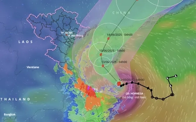 Vào 4 giờ sáng 12/6, tâm bão trên khu vực phía tây quần đảo Hoàng Sa với sức gió mạnh nhất vùng gần tâm bão mạnh cấp 8-9 (62-88km/h), giật cấp 11.