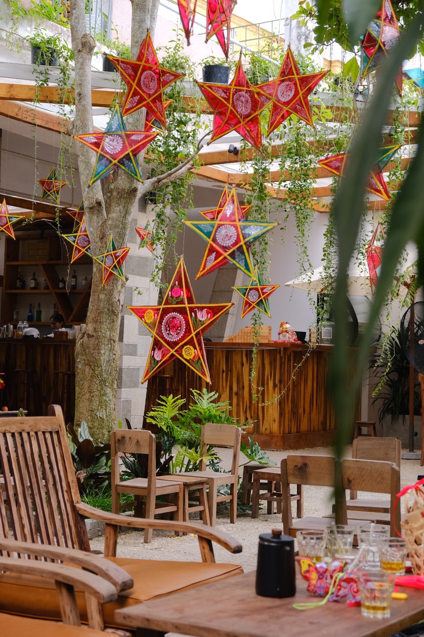 Với không gian mộc mạc được tô điểm bằng những chiếc đèn ông sao đáng yêu, những chiếc ghế gỗ xinh được kê ngay ngoài vườn là một không gian lý tưởng để các vị khách có thể trò chuyện cùng nhau dưới những tán cây treo đèn trung thu. Khi đến với Mùa, bạn còn được viết thư bí mật để gửi cho chính mình hoặc đơn giản chỉ làm thoả mãn niềm yêu thích viết lách của mình.