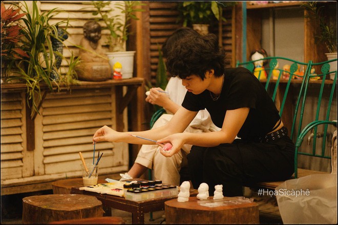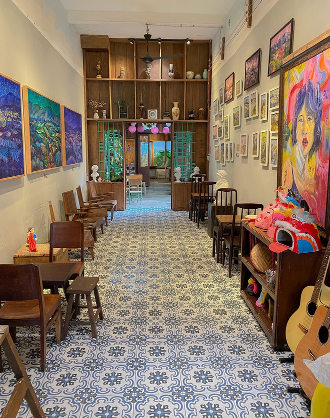 Quán cà phê mang đầy chất thơ và sự hoài cổ này là địa điểm quen thuộc của nhiều bạn trẻ muốn tìm về chốn xưa cũ lẫn tìm thấy niềm đam mê nghệ thuật ở nơi đây. Ngoài những bức tranh được treo trên tường, quán còn trưng bày luôn những chiếc tượng được khách tô ngay một góc, xen lẫn những chiếc đèn lồng như đánh dấu một mùa trung thu nữa đang đến.