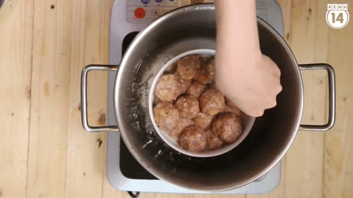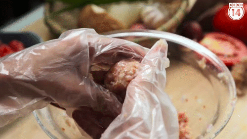 Ướp thịt 15-20' rồi vo thành các viên nhỏ vừa ăn.