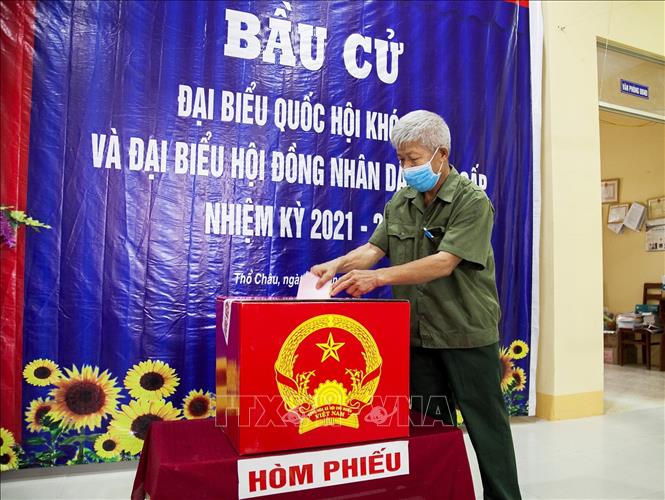 Ngày 21/5, tỉnh Kiên Giang tổ chức bỏ phiếu sớm cho xã đảo Thổ Châu (thành phố Phú Quốc). Trong ảnh, cử tri xã đảo Thổ Châu, thành phố Phú Quốc (Kiên Giang) tham gia bầu cử tại khu vực bỏ phiếu số 4 (Ảnh: Hồng Đạt/TTXVN)