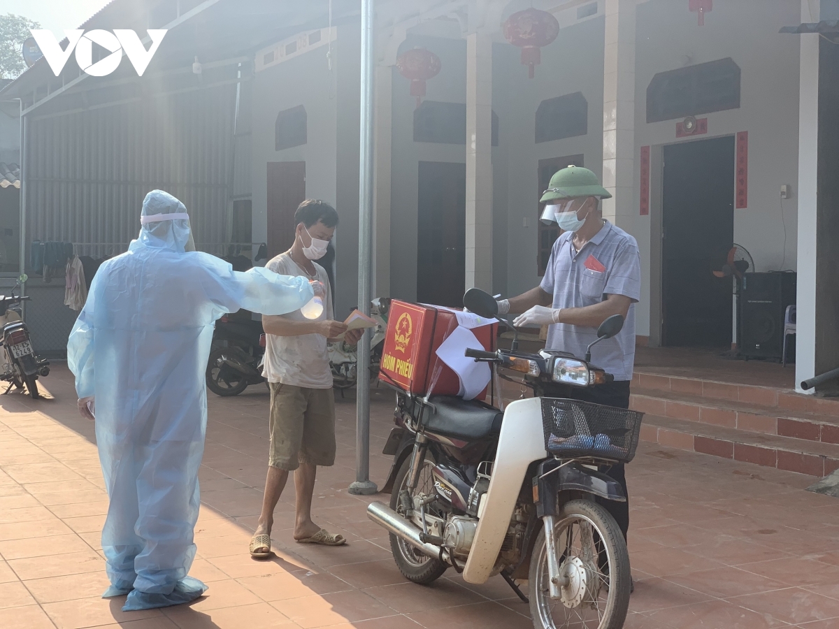 Tại ổ dịch tại xã Si Pa Phìn, huyện Nậm Pồ (tỉnh Điện Biên) có 9 điểm bỏ phiếu với gần 3.500 cử tri, trong đó có nhiều cử tri là F1 thuộc các xã khác trên địa bàn huyện hiện cũng đang thực hiện cách ly tại đây. Các cử tri này được chính quyền địa phương nơi cư trú giới thiệu về điểm bầu cử mới - nơi đang tiến hành cách ly (Ảnh: VOV)