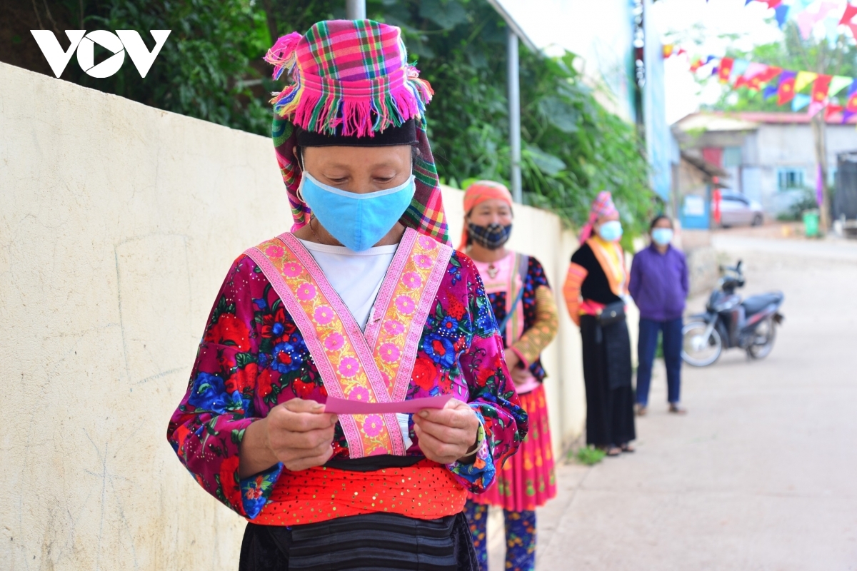 Xã Minh Hòa, huyện Hữu Lũng (Lạng Sơn) có 1.950 cử tri, tuy nhiên do dịch bệnh COVID-19, có tới 700 người là đối tượng F2 phải thực hiện cách ly tại nhà, không thể đi đến địa điểm bỏ phiếu tập trung. Do vậy, ngay sau lễ khai mạc, các thành viên tổ bầu cử đã thực hiện phương án hòm phiếu di động, chuyển hòm phiếu phụ đến tận nhà ở của cử tri (Ảnh: VOV)
