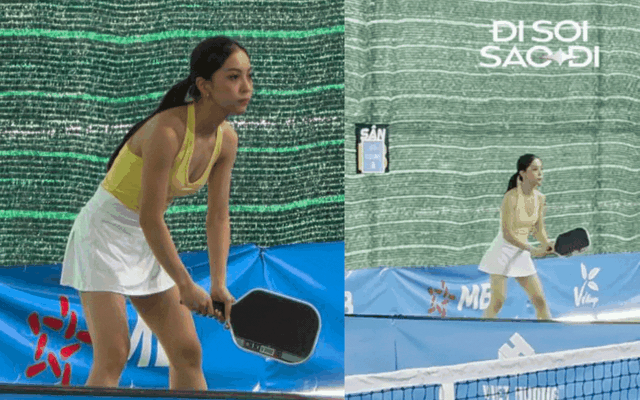 Diện set đồ thể thao năng động gồm áo croptop vàng phối cùng chân váy tennis trắng, Nhật Lê khoe vóc dáng thon gọn, săn chắc. Đặc biệt, loạt khoảnh khắc ghi lại qua cam thường cho thấy nhan sắc của cô nàng vẫn cực kỳ nổi bật với làn da sáng, gương mặt rạng rỡ cùng thần thái tập trung hết mình cho từng pha bóng.