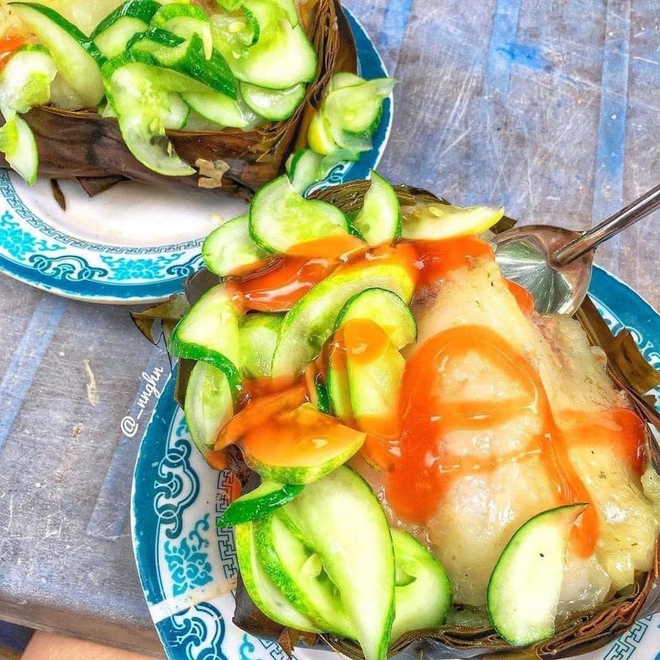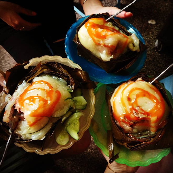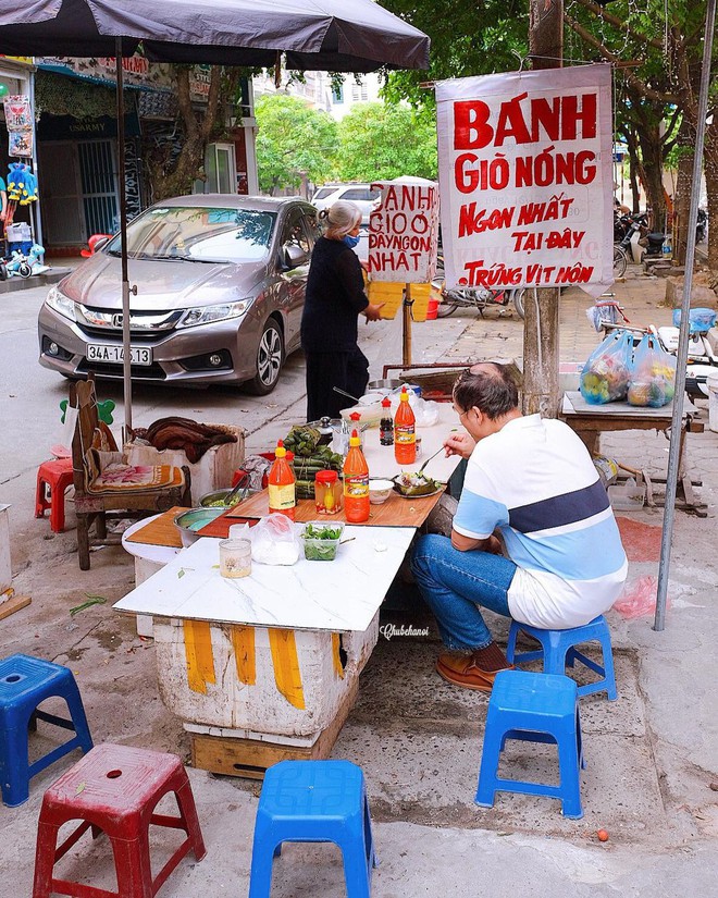 Xung quanh cổng chợ là cả một dãy treo chiếc biển viết tay nguệch ngoạc “bánh giò nóng”. Song, người ta thường chen nhau ở một chiếc xe đẩy của bà cụ tóc bạc với lời đồn đã bán từ năm 1993, hoặc là hàng ở ngay số 76 Lê Lợi.