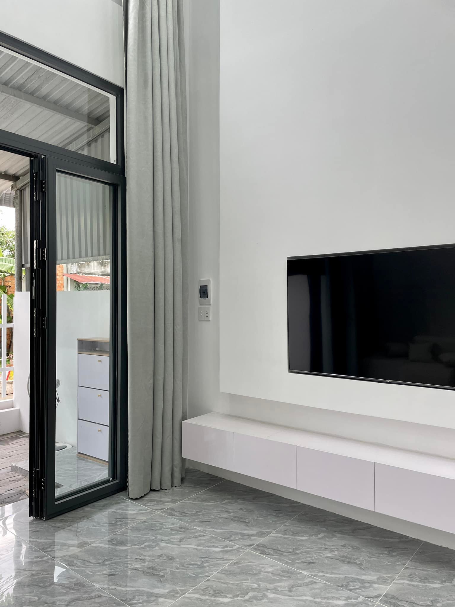 Không chỉ chú trọng vào thiết kế, Phong còn dành nhiều thời gian để nghiên cứu và lựa chọn nội thất sử dụng trong căn nhà của mình. Anh chàng cho biết, khi chọn mua nội thất, bản thân không đặt ra quá nhiều yêu cầu mà chỉ chọn mua những thứ phù hợp với căn nhà. Ví dụ như chiếc TV 65 inch được Phong mua với giá 16 triệu. Trước đó, anh chàng còn bỏ công sức tính toán kỹ lưỡng về kích thước, chất lượng và cả cách bố trí sao cho hài hòa với thiết kế của toàn bộ ngôi nhà.