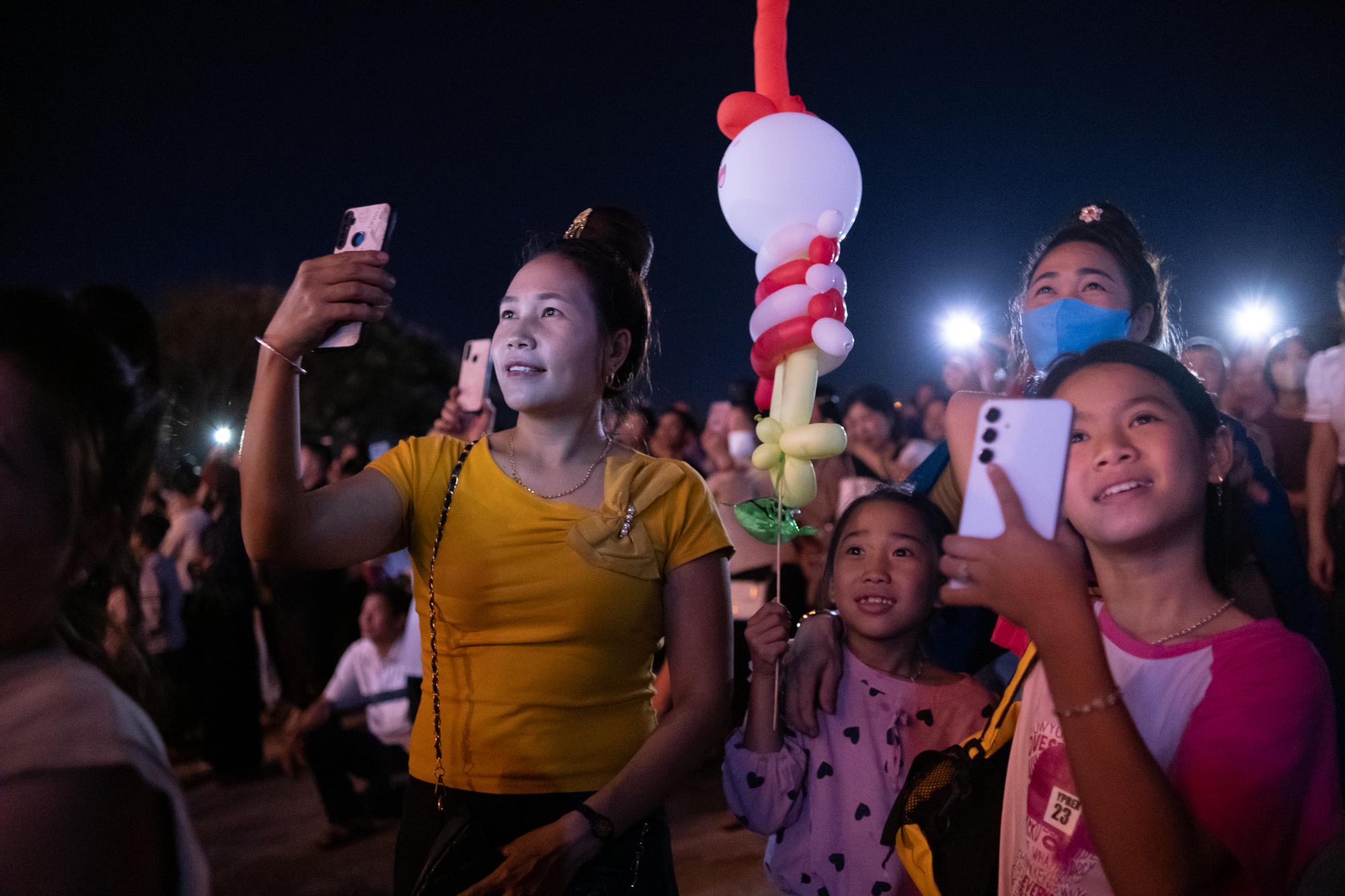 Tối 6/5, hàng ngàn người dân và du khách thập phương tập trung dọc sông Nậm Rốm gần khu vực cầu Thanh Bình và cầu Nậm Rốm để chọn chỗ xem bắn pháo hoa.