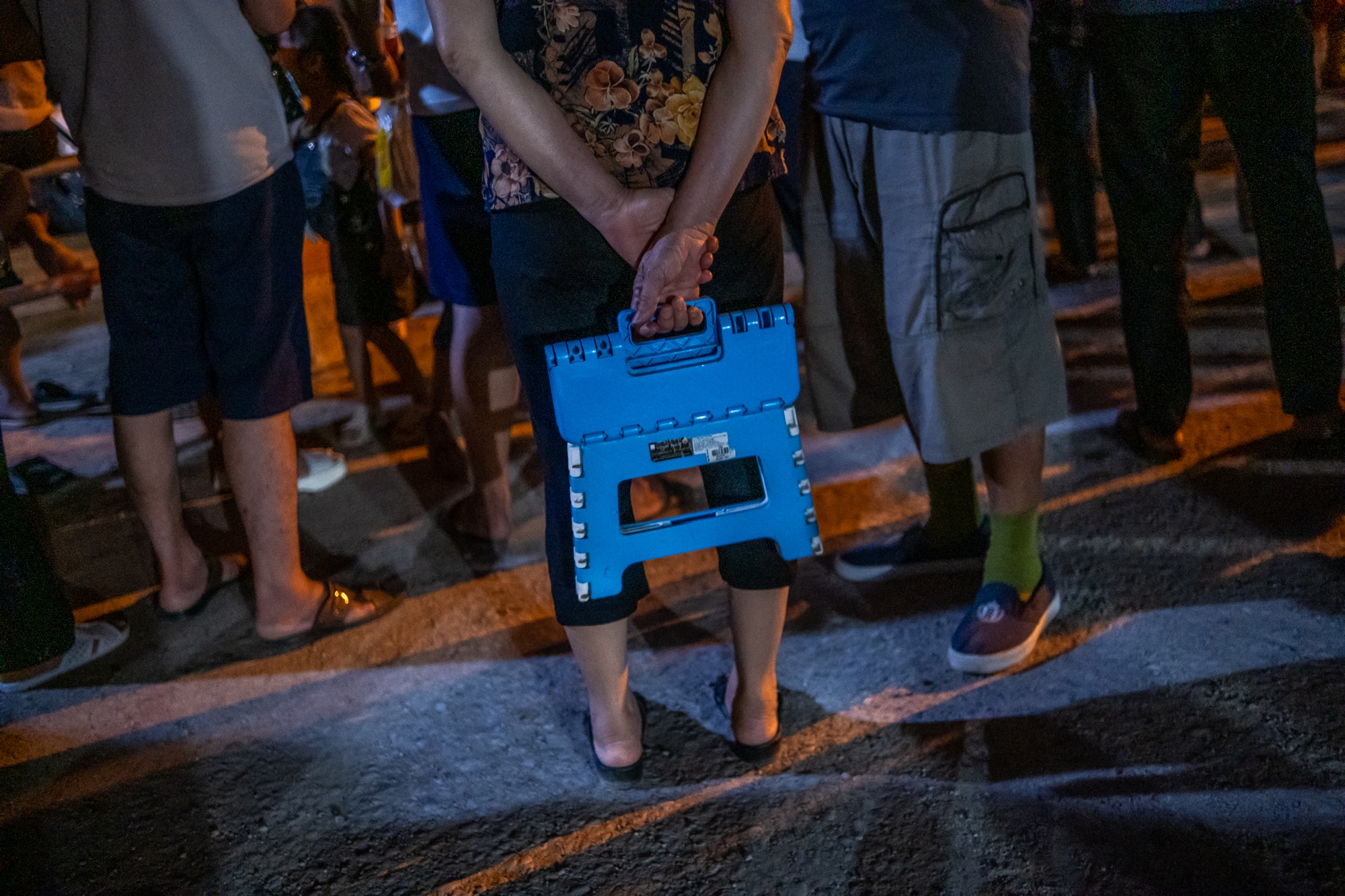 Nhiều người xách theo ghế nhựa để ngồi cho đỡ mỏi chân trong thời gian chờ đợi màn bắn pháo hoa tầm cao