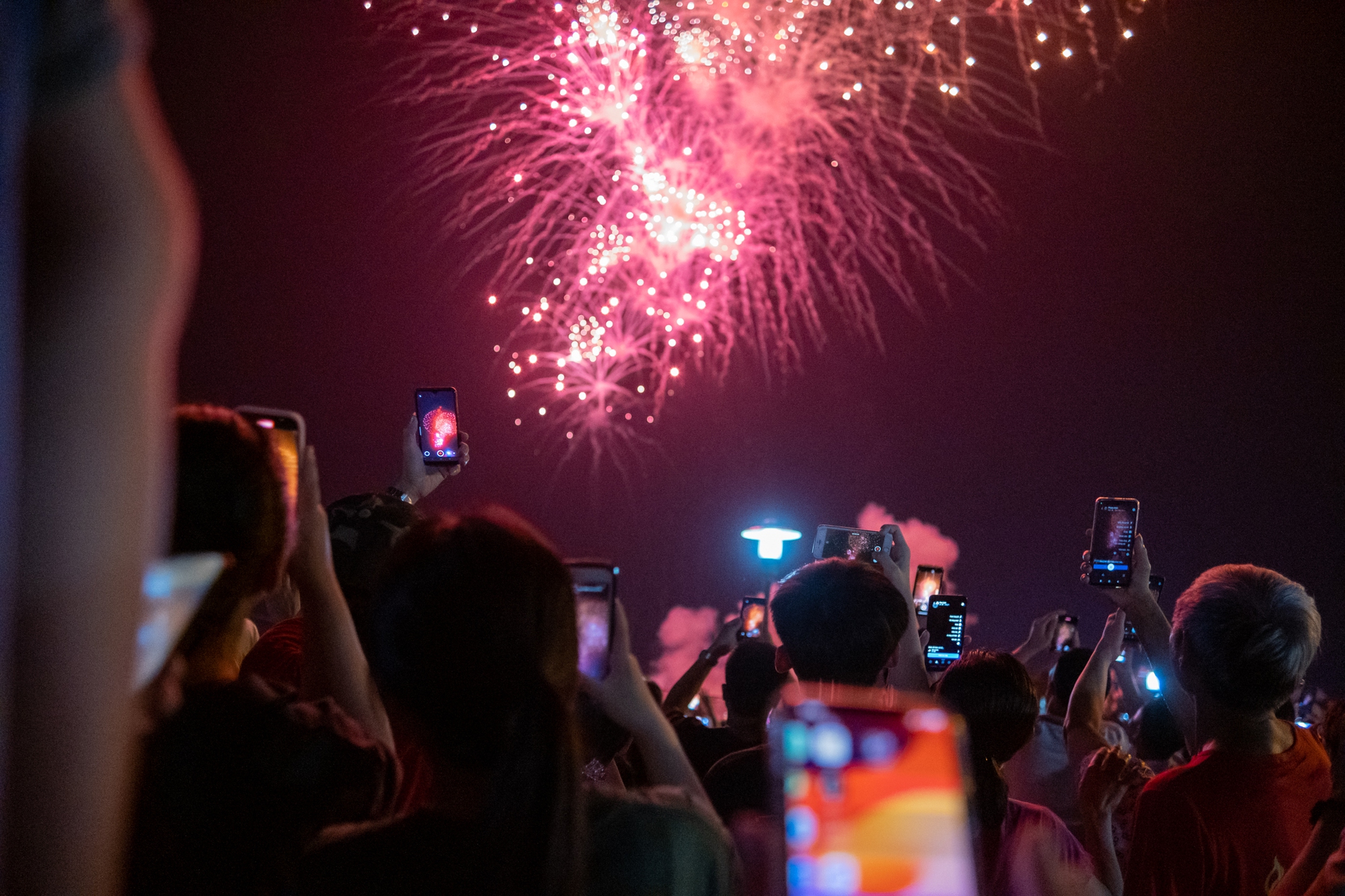 Ai cũng tranh thủ đến thật sớm để chọn cho mình vị trí đẹp, có thể theo dõi toàn cảnh màn bắn pháo hoa tầm cao