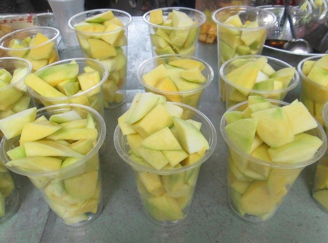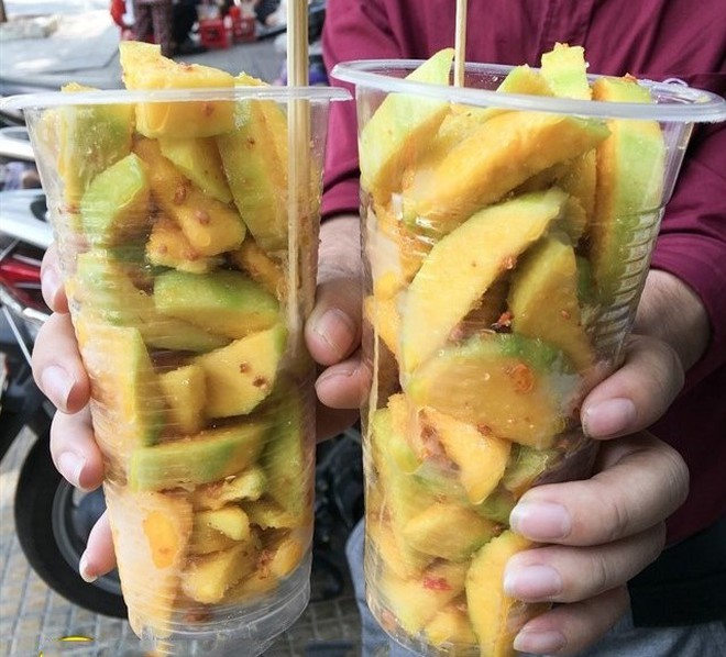 Xoài lắc cũng là món ăn vặt không thể thiếu đối với các bạn học sinh, sinh viên ở Sài Gòn. Miếng xoài tươi vừa cắt rất giòn lại được lắc thấm đều vị mặn, ngọt, chua, cay của các loại gia vị hòa quyện với nhau đủ khiến người ta ứa ngay nước miếng khi vừa nghĩ đến.
