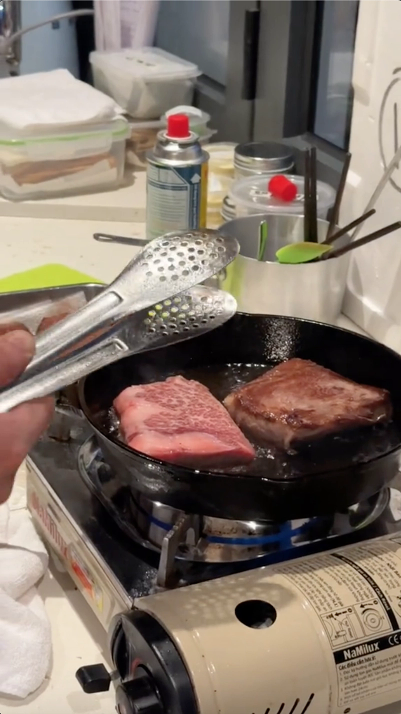 Và vậy là gia đình ca nương đã có một bữa tiệc "chuẩn 5 sao" ngay trong chính căn nhà của mình (Ảnh chụp màn hình TikTok)