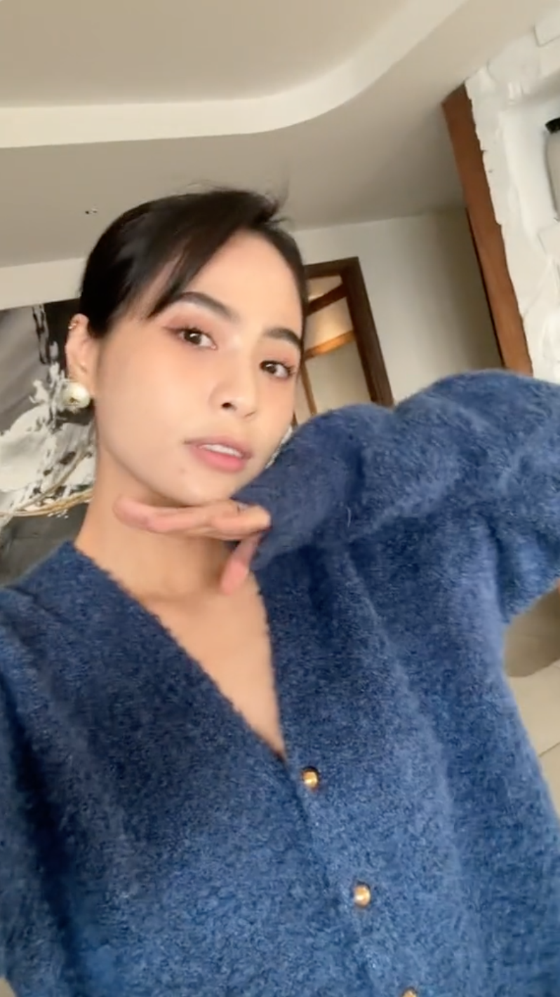 Ca nương Kiều Anh đã thuê cả dịch vụ, mang trải nghiệm như ăn tại một nhà hàng 5 sao về trong ngôi nhà của mình (Ảnh chụp màn hình TikTok)