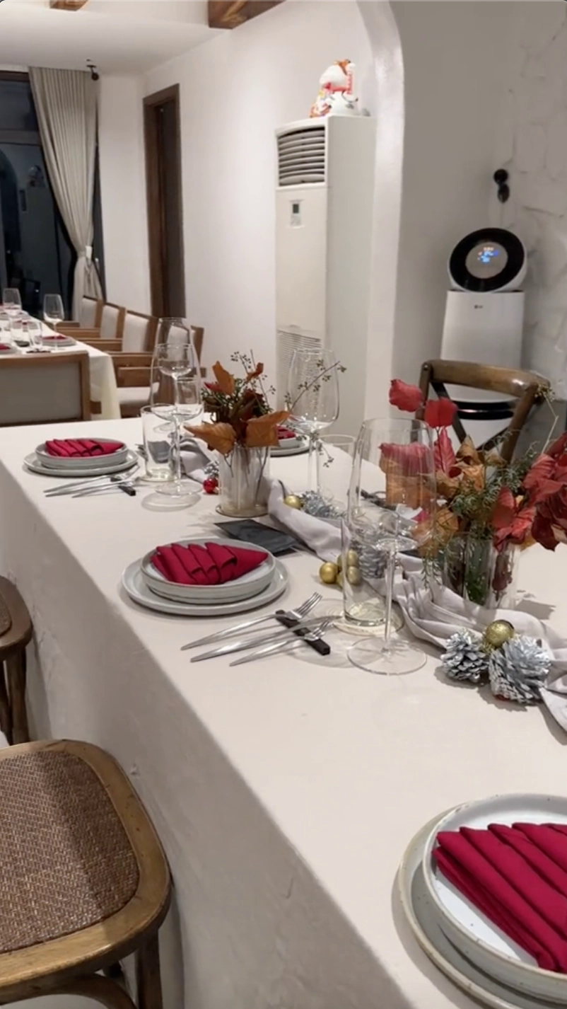 Khi tới bữa ăn, bên cạnh đầu bếp, còn có rất nhiều nhân viên có mặt ngay trong chính căn nhà của gia chủ để phục vụ, rót nước... Có thể nói, mọi trải nghiệm không khác gì ở nhà hàng 5 sao, mà còn thân thiện và thuận tiện hơn khi bạn đang được ở trong chính căn nhà của mình.