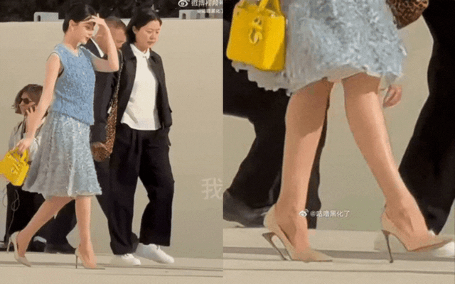 Khoảnh khắc long gót giày cao gót của Địch Lệ Nhiệt Ba đang khiến dân tình bàn tán xôn xao. (Nguồn: Weibo)