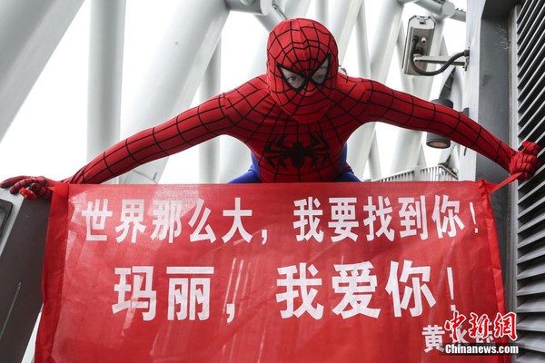 Cũng giống như bao chàng trai khác, vào ngày 20/5 vừa qua, một chàng trai trẻ người Quảng Đông (Trung Quốc) đã đóng giả làm spider-man trèo lên tháp Quảng Châu để "tìm và cầu hôn" bạn gái. Hành động của anh nhanh chóng nhận được sự chú ý của đông đảo cư dân mạng nước này.