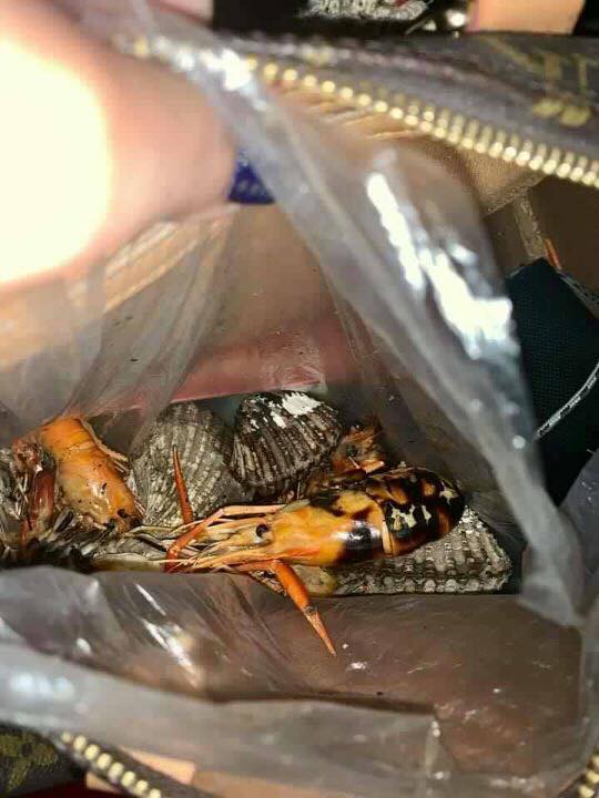 Những bức hình cho thấy, hai cụ bà này đã lén mang hộp và túi bóng để nhét rất nhiều cua biển và tôm mang về nhà. Khi quản lý của nhà hàng đến kiểm tra thì họ giật mình phát hiện, chiếc hộp cùng túi bóng nhựa màu đen 2 cụ bà mang theo chất đầy tôm và cua biển nặng khoảng hơn 4kg.