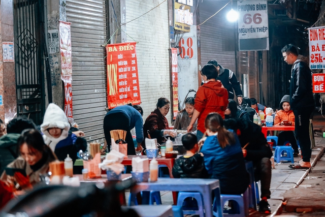 Theo con gái cô Quỳnh: "Mùa hè, trung bình mỗi tối sẽ bán được 700 - 800 bát. Mùa đông, có đợt trời mới se se lạnh, lượng người đi chơi về muộn đông hơn thì có khi 2 - 3 giờ sáng đã hết bay 1 tạ bún, cũng phải ngót nghét 1000 bát".