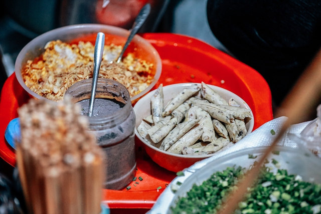 Để có thể phục vụ không ngừng nghỉ từ 6h tối đến tận 4 giờ sáng, mỗi ngày, nhà cô Quỳnh đều vặn hết công suất. "Mỗi người một việc, làm sao thì làm cứ đến 11 giờ trưa là phải hoàn thành hết các công đoạn, dự trù số lượng, sơ chế, chuẩn bị nguyên liệu, chiều chỉ còn chế biến, nấu riêu, rán đậu, thái giò, sụn…", cô chủ quán nói.
