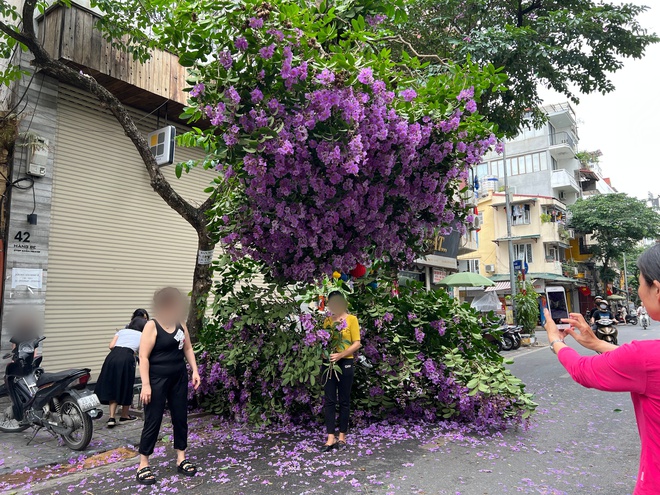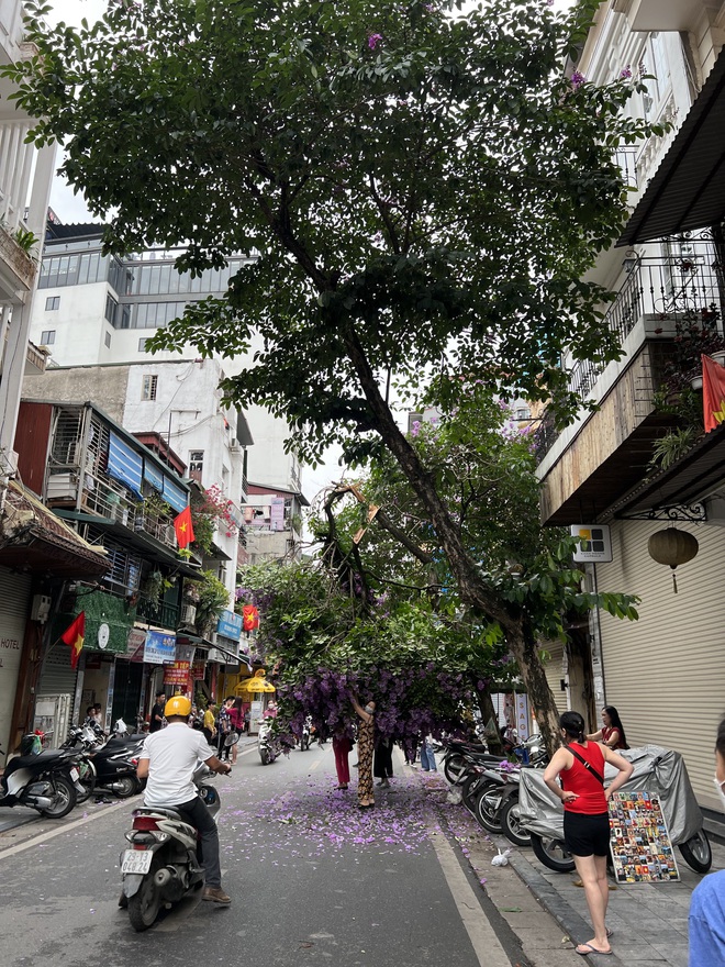Khoảng 11h ngày 8/5, một cành cây bằng lăng tím trước số nhà 42 Hàng Bè, phường Hàng Bạc, quận Hoàn Kiếm, Hà Nội bất ngờ gãy rụng. Do cành cây chưa rụng hẳn, vô tình tạo thành một mái vòm, thu hút sự quan tâm của nhiều người. Bất chấp nguy hiểm khi cành cây còn vắt vẻo, nhiều người dân và du khách tranh thủ chụp ảnh "check-in".