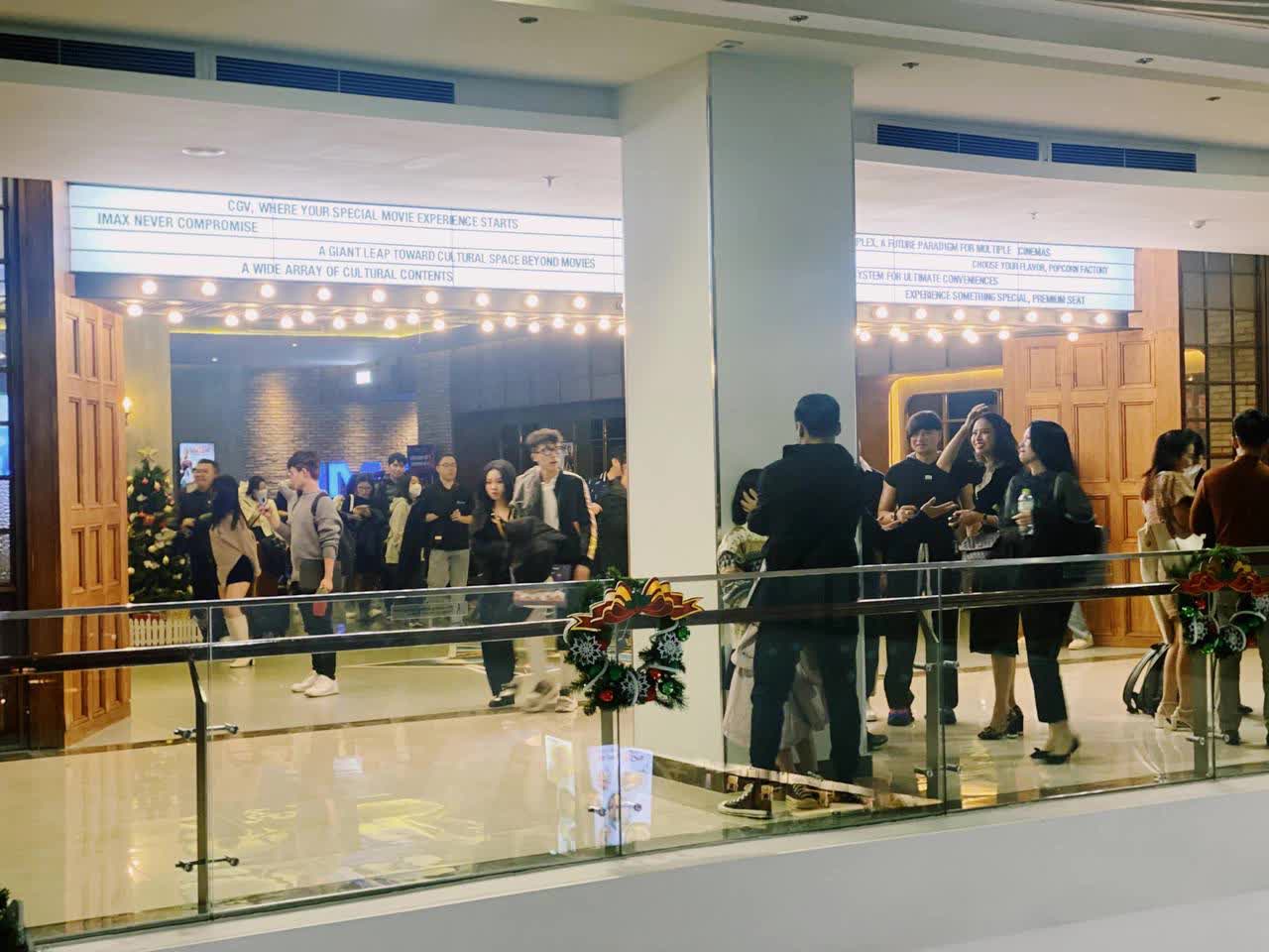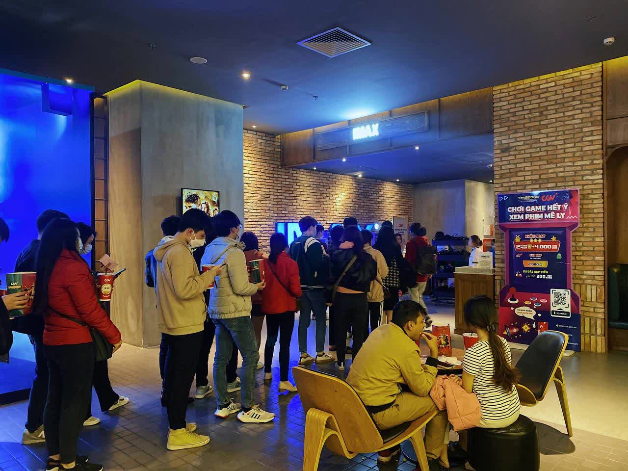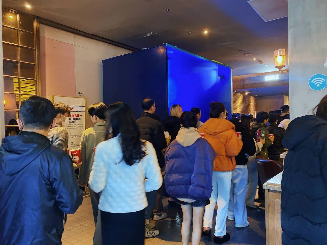 Thời điểm chuyển giao giữa suất cũ vừa hết và suất mới sắp chiếu, dòng người ùn ùn chen chúc chờ đợi. Một số bạn trẻ không kịp đặt vé online phải xếp hàng khá lâu mới mua được vé trực tiếp.