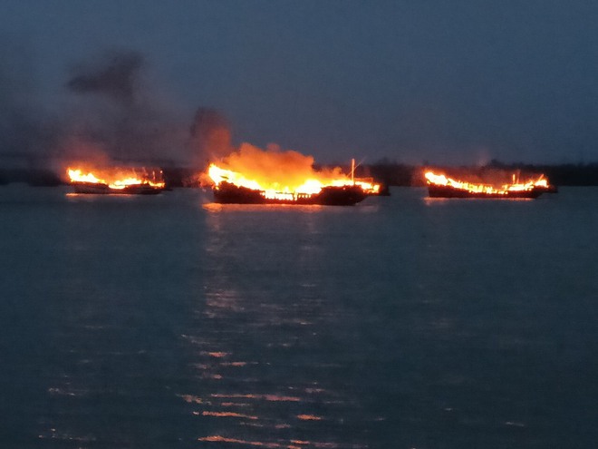 Theo điều tra ban đầu, vụ cháy xuất phát từ một chiếc tàu gỗ, rồi lan ra các phương tiện khác.