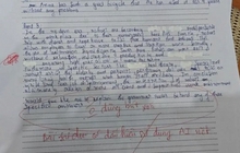 Có thể thấy trong bức ảnh, đáp án của người cháu là: "5 × 8 = 40". Tưởng chừng như đáp án đúng nhưng lại bị cô giáo phê là sai. Giáo viên đã viết câu trả lời đúng phải là 8 x 5 = 40 và phải bao gồm đơn vị đo lường "kilôgam" (Kg).
