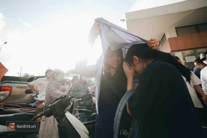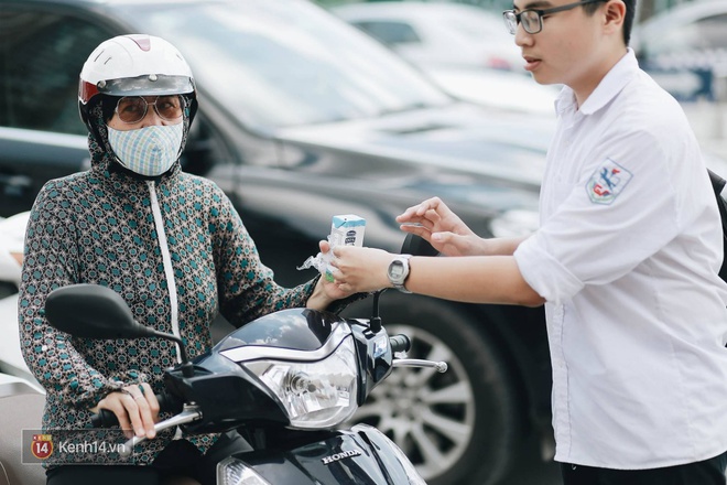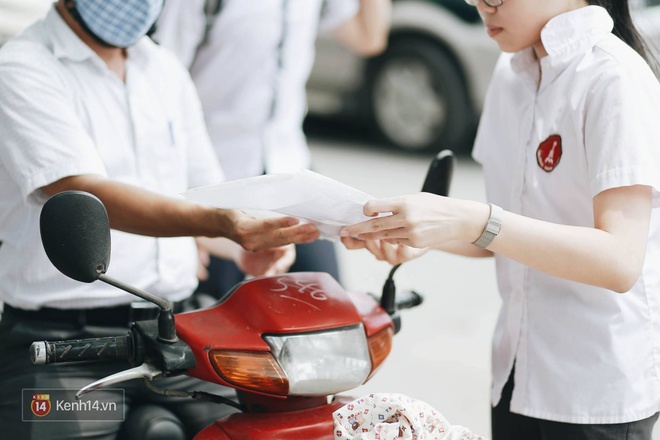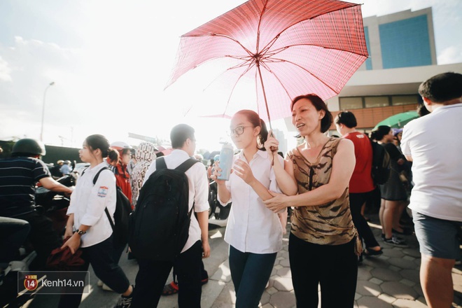 Rút kinh nghiệm từ buổi thi Văn sáng nay, hầu hết các thí sinh đều không để xảy ra tình trạng quên hay tới điểm thi quá muộn. Tuy nhiên, thời tiết Hà Nội lại trở nên khá nóng. Để con em được thoải mái và tập trung tốt nhất cho kỳ thi, nhiều phụ huynh đã mang nước theo cho con uống hay che ô rất cẩn thận tới tận cổng trường cho con.