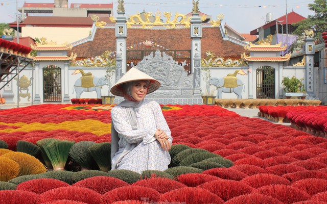 Khách quốc tế thích thú check-in làng hương nổi tiếng ở Hà Nội