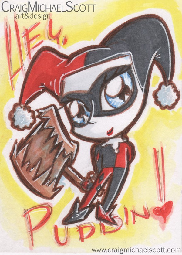 Bên cạnh các siêu anh hùng, các “siêu xấu xa” cũng được mô tả theo cách dễ thương. Bác sỹ “baby” Harleen Quinzel, bạn gái Joker được mô tả như một cô nàng có đôi mắt ngây thơ… với một cái búa phía sau.