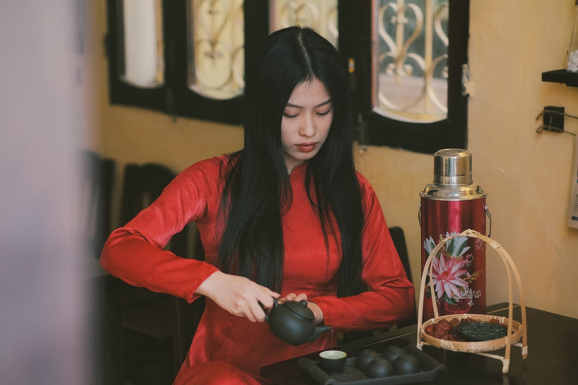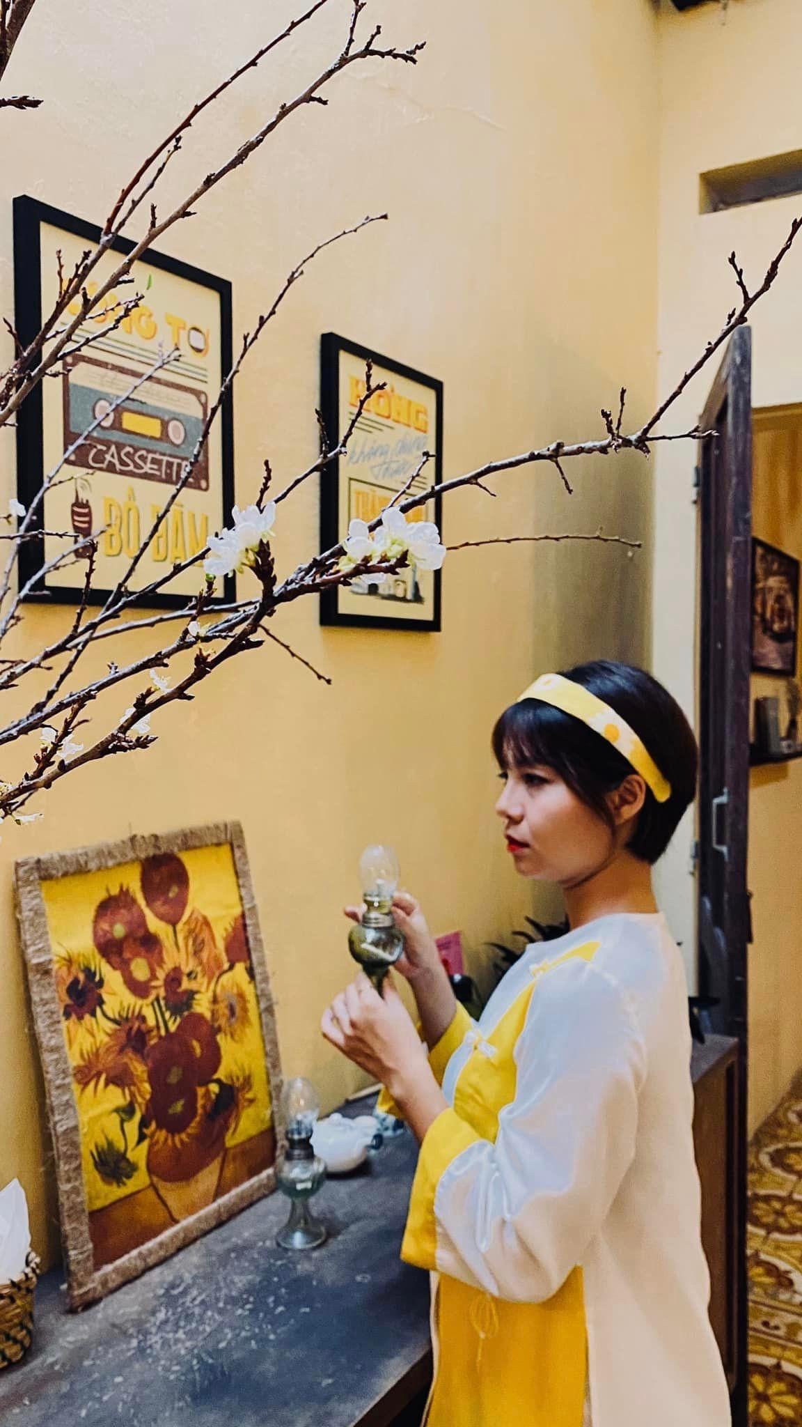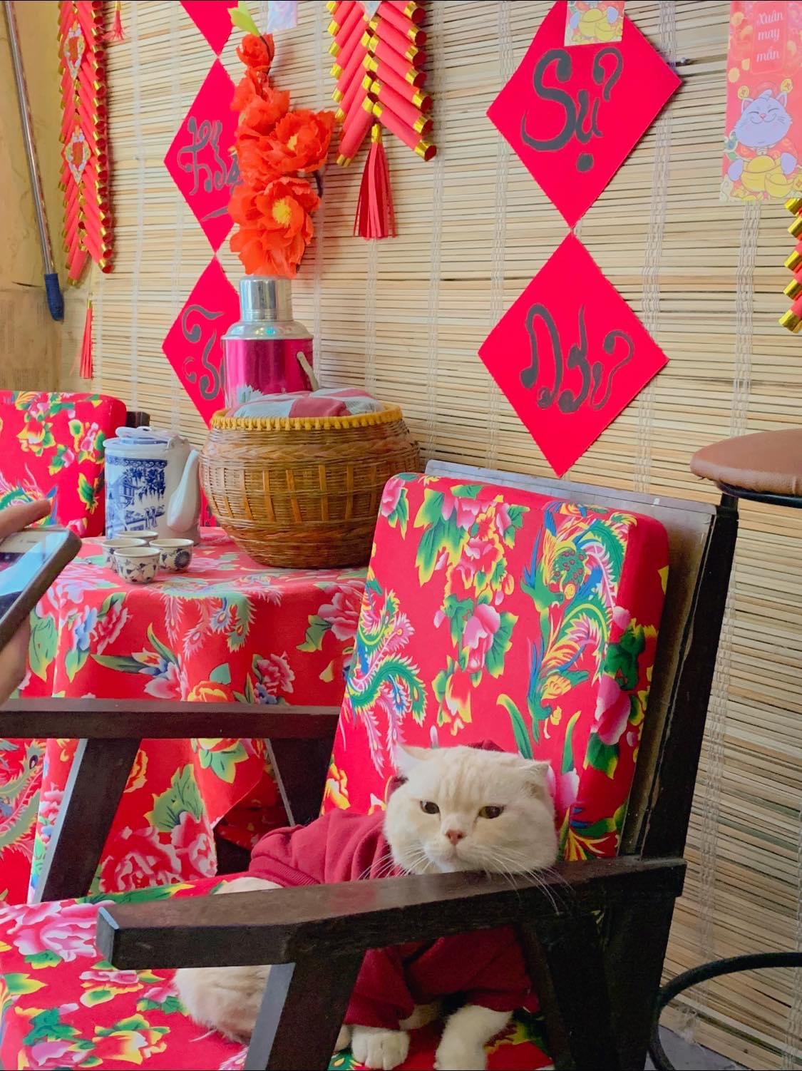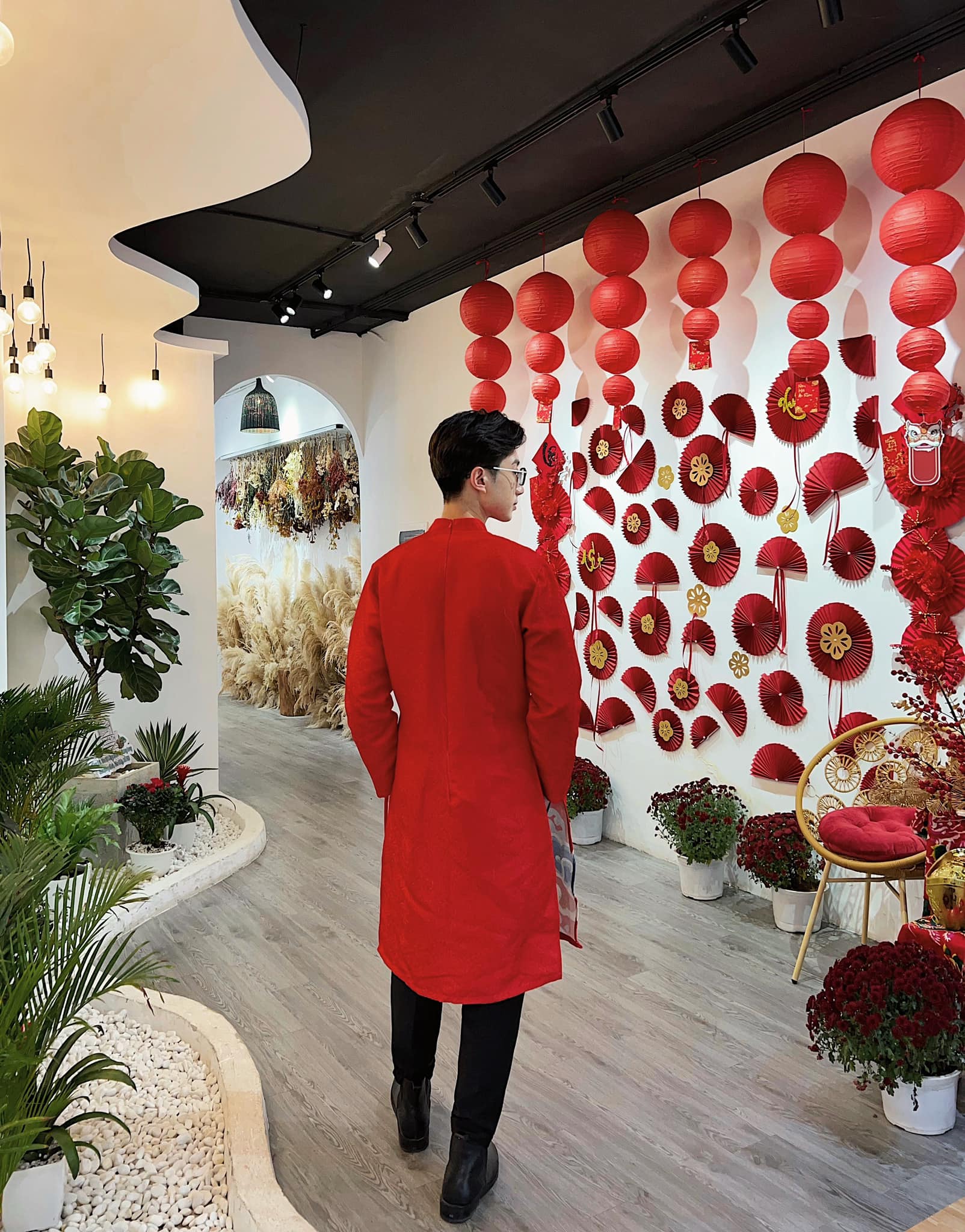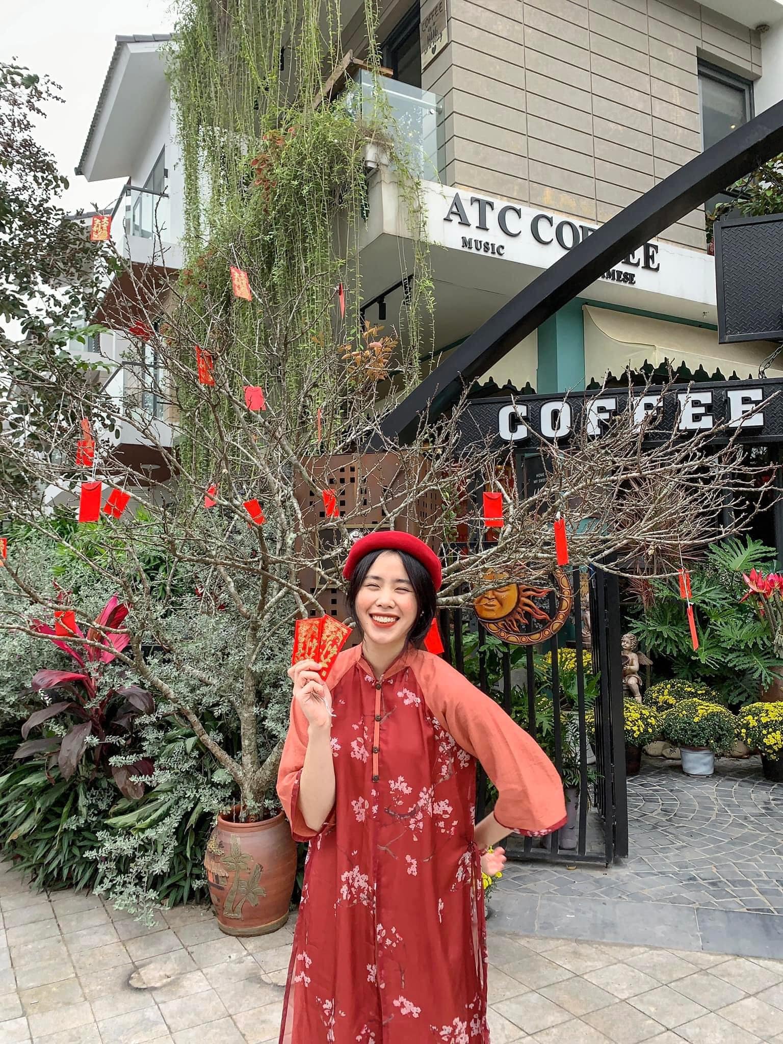 Sắc đỏ ngập tràn của bao lì xì, những câu đối xuân được trang trí tại đây mang lại sự ấm áp chân thật của ngày Tết. Chỉ cần đến quán với trang phục đỏ, bạn sẽ có được những bức ảnh Tết như ý cho mình.
