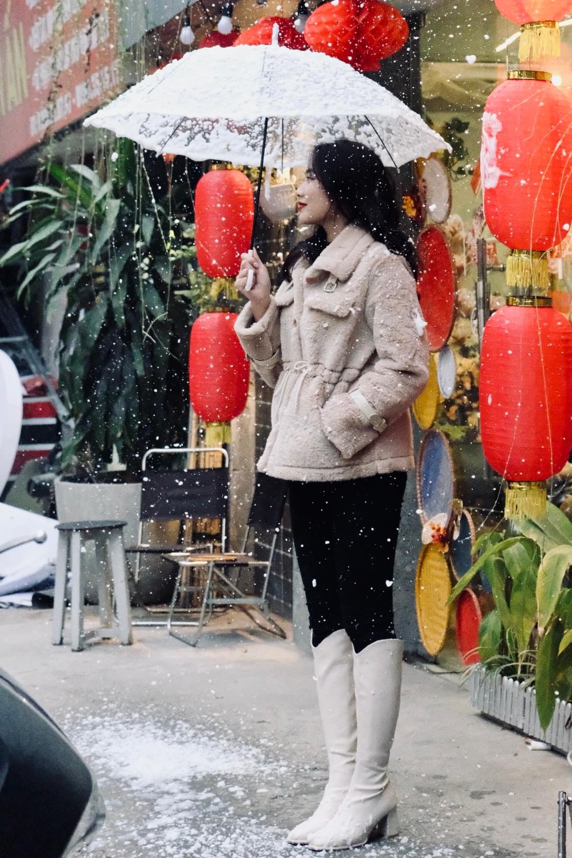 Điểm nhấn đặc biệt là quán cà phê này vẫn phun tuyết trang trí tạo nên sự mới lạ cho những bức ảnh Tết. Tuyết ở đây được tạo theo yêu cầu của khách, bạn chỉ cần order với chủ quán là sẽ có ngày tuyết rơi ngoài hiên giữa lòng Hà Nội.