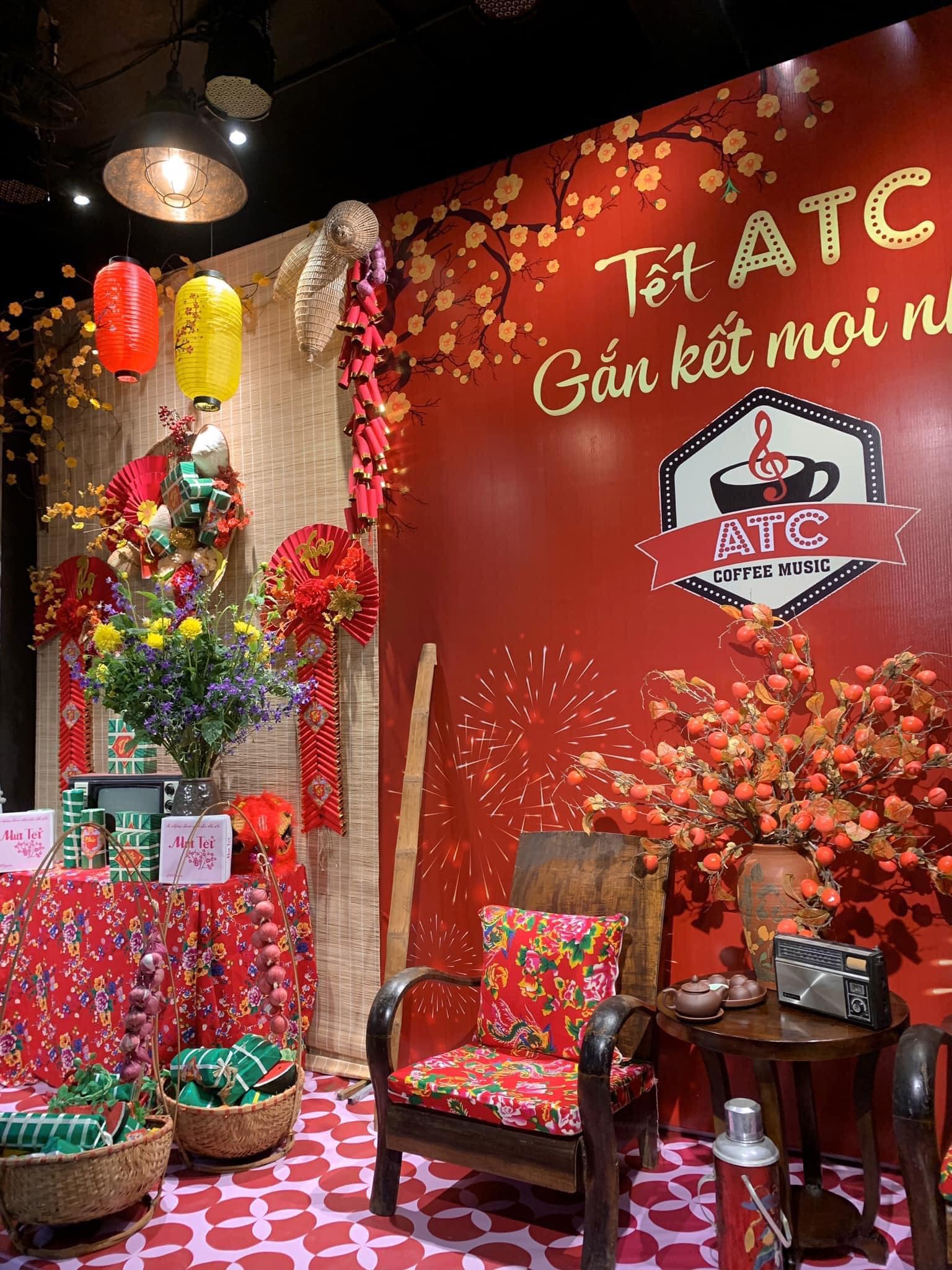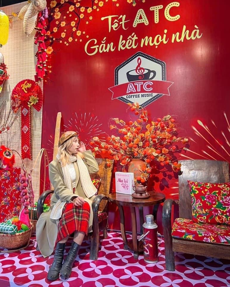 Bắt kịp được xu hướng đón Tết 2023, ATC Coffee decor không gian ngập tràn không khí tết. Không tọa lạc tại trung tâm thành phố, ATC Coffee vẫn thu hút giới trẻ tìm đến nhờ lối thiết kế đa sắc màu với nhiều góc check-in.