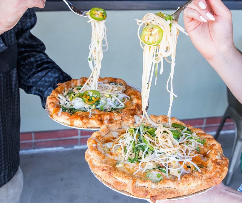 Pizza phở hay "bánh nướng" phở đây? Lại một phiên bản khác của phở không có nước dùng, bánh phở được cho thẳng lên đế pizza rồi cho vào lò nướng. Một số nơi cho cả ớt chuông lên mặt bánh rồi trộn cùng sợi phở