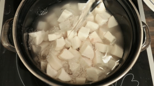 - Cho sắn vào nồi, đổ nước ngập sắn.