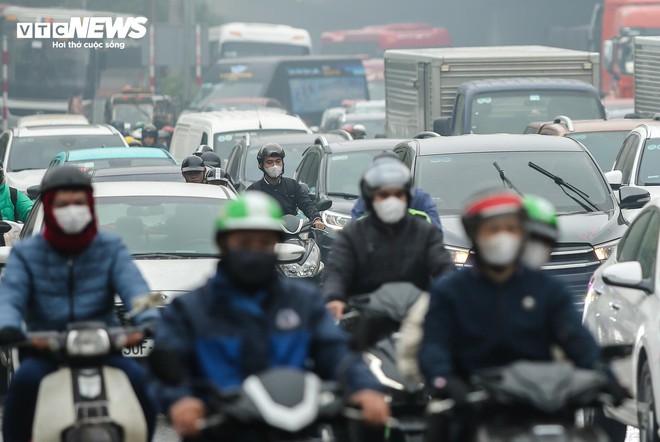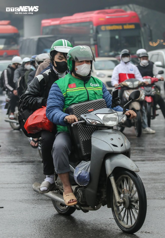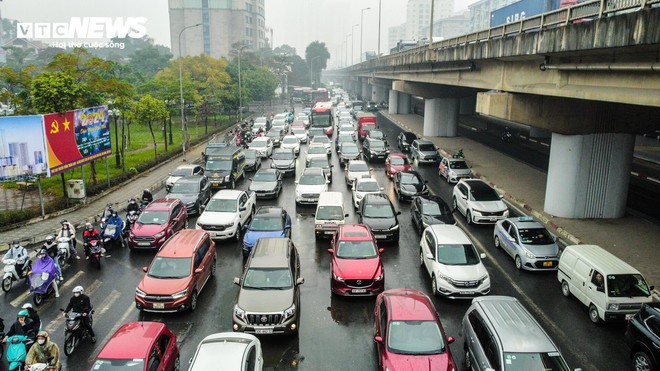 Trong kỳ nghỉ Tết dương lịch 2024, người lao động được nghỉ 3 ngày liên tiếp từ 30/12/2023 đến hết 1/1/2024. Trong sáng đầu tiên nghỉ lễ, nhiều tuyến đường, đặc biệt là Vành đai 3 hướng ra ngoại thành, bị ùn tắc. Dòng xe nhích từng chút một trong cơn mưa phùn.