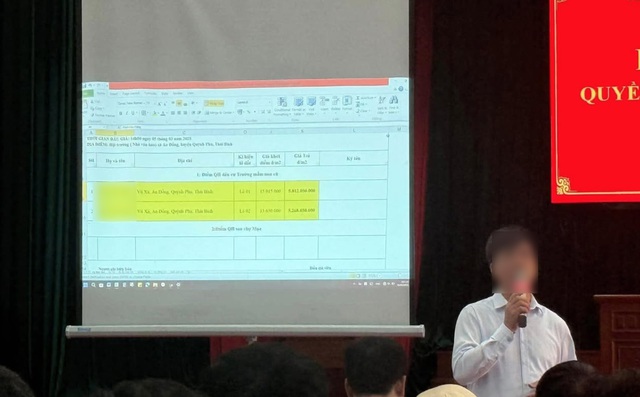 Trong khi đó, lãnh đạo Trung tâm Phát triển quỹ đất huyện Quỳnh Phụ cũng đang bám sự việc. Bước đầu xác định ông T. là người địa phương, không phải giàu có gì, thân nhân hiền lành, làm ăn lương thiện chứ không có động cơ, mục đích thổi giá hay gì khác. Nguyên nhân dẫn đến sự việc là do nhầm lẫn, trả giá cho cả 1 lô đất bằng giá 1m2 đất.