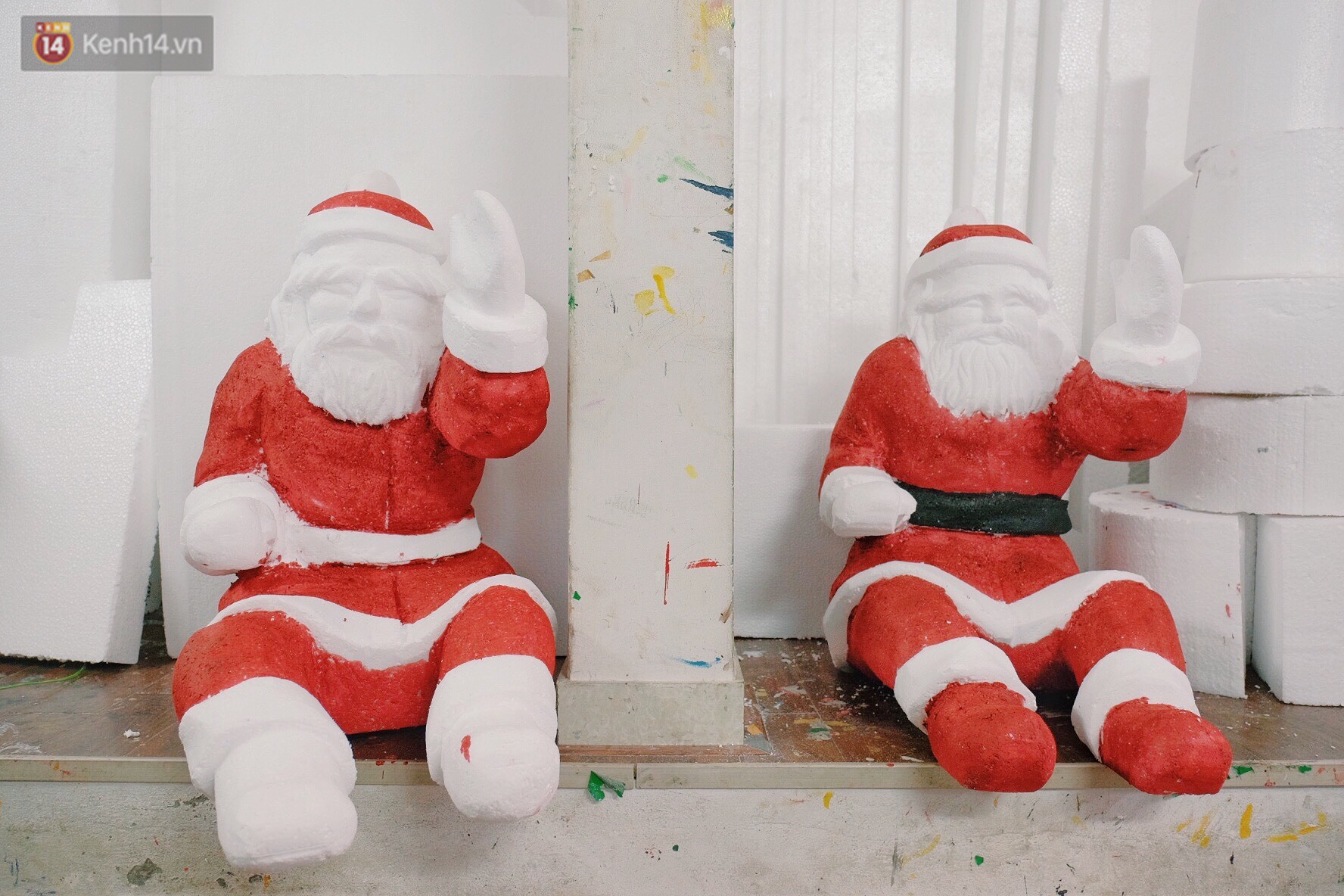 Bên trong một cửa hàng chuyên làm các sản phẩm bằng xốp "tràn ngập" nhiều công cụ như hộp sơn, dao, kim tuyến, thước kẻ,... để tiện cho việc tạo hình các nhân vật theo yêu cầu của khách hàng.