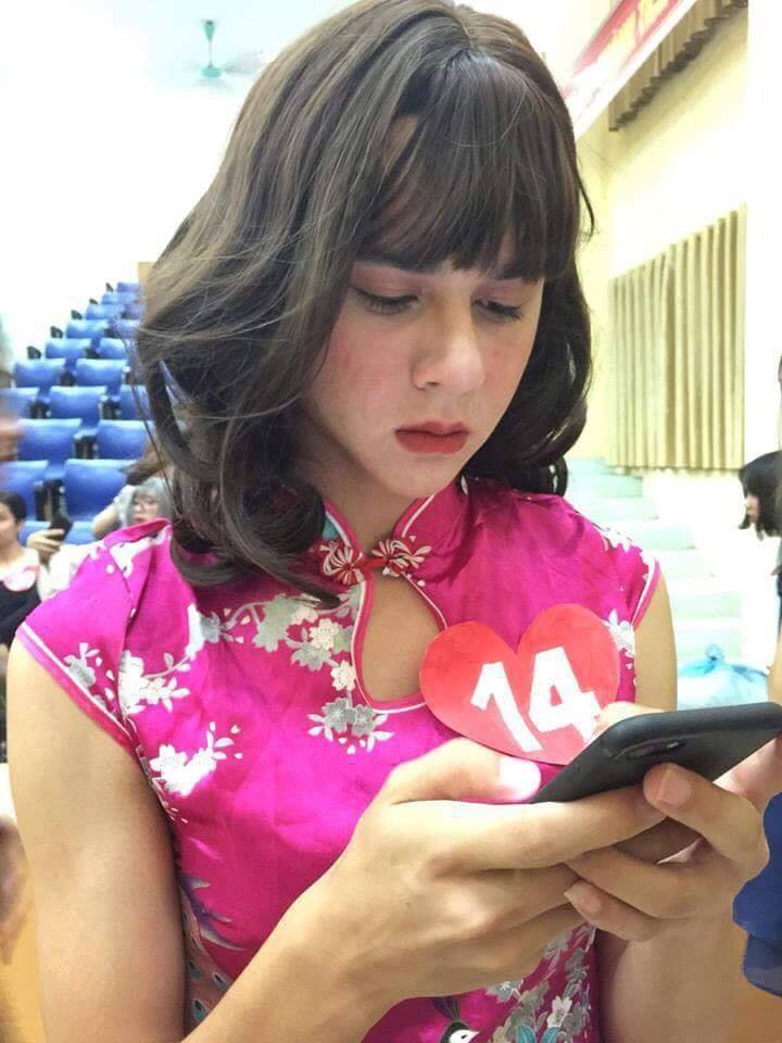 Đặc biệt là nam sinh mang số báo danh 14 với màn hoá thân thành "bông hồng lai" vô cùng xinh đẹp đã khiến dân mạng đua nhau sôi sục đi tìm info.