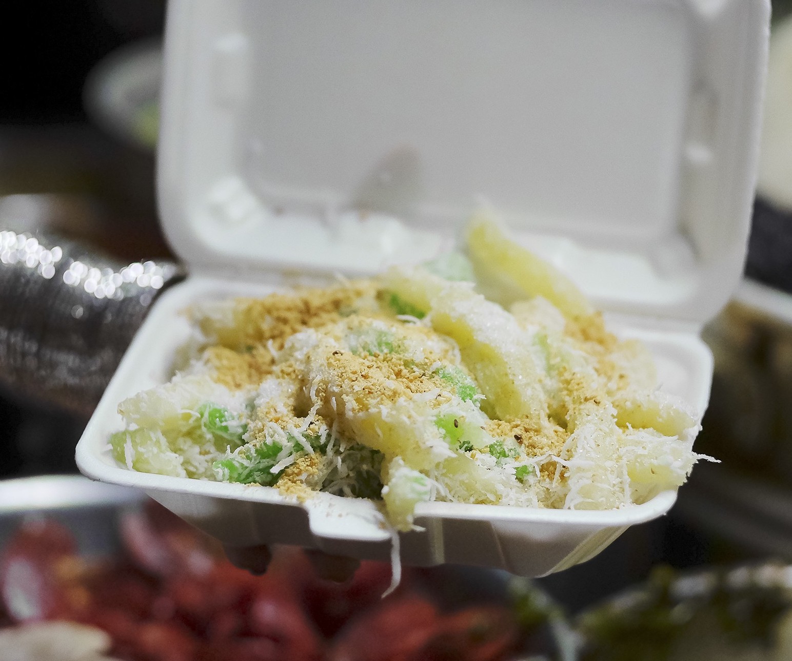 Xe xôi chè nằm ngay ngãy tư chợ Tân Mỹ luôn dậy mùi thơm từ làn khói nghi ngút từ lâu đã là nơi "cứu cánh" cho cơn đói về đêm của người dân khu vực này. Do quanh đây tập trung nhiều công nhân, người đi làm, học sinh về muộn nên chị chủ thường bán đến tận 3 giờ sáng mới dọn về.