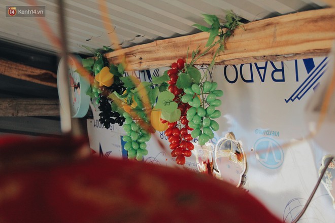 Bát cháo anh Dũng mua bà Thuỷ vẫn để tạm trên chạn, chưa buồn nâng bát. Nhìn căn "nhà" nhỏ bé của ông bà phía trên có vài chiếc đèn lồng. Bà bảo, cứ hễ đi nhặt được gì đẹp, ông lại mang về trang trí thêm trong nhà. Ấy vậy mà căn nhà nhìn bề ngoài thì tuềnh toàng nhưng bên trong ấm cúng, đầy ắp kỉ niệm giữa 2 ông bà.