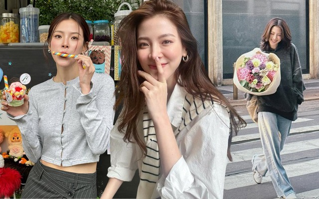 Gam xám luôn là tông màu "ruột" của mùa thu, và Baifern đã khéo léo chứng minh vì sao nó chưa bao giờ lỗi mốt. Cô nàng diện cardigan xám mỏng phối cùng chân váy kẻ xám đậm, tạo nên tổng thể ton-sur-ton vừa sang chảnh vừa tinh tế. Thiết kế váy xẻ tà nhẹ giúp outfit thêm mềm mại, tôn dáng mà vẫn giữ được nét thanh lịch, trẻ trung chuẩn nàng thơ ngày thu.
