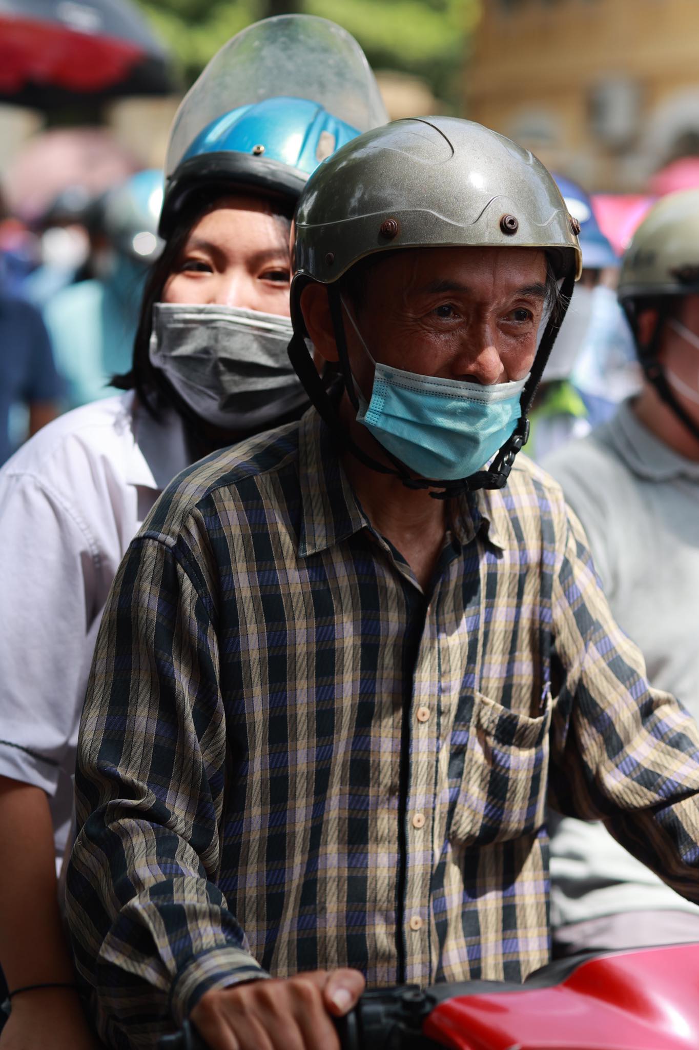 "Mình ngoài này thấy nóng thế nào thì cũng chẳng bằng áp lực làm bài của con. Hai tiếng nói ra thì dài mà mau trôi lắm. Nhà tôi gần đây nhưng cũng không dám về nhà. Nhỡ đâu con không làm được bài, đi ra mà không thấy mình, tội đứa nhỏ", chú Long đưa con đi thi ở Hà Nội tâm sự. Và đây chỉ là một trong vô vàn người cha khắp cả nước, đội cả trời nắng để đưa con tới trường.