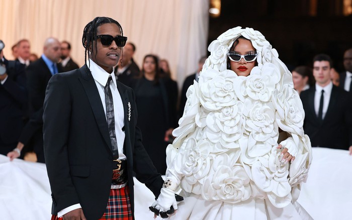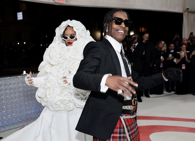 Về phía A$AP Rocky, nam rapper lên đồ bảnh bao với phong cách cổ điển, kết hợp chiếc áo khoác tuxedo lấy cảm hứng từ nhà thiết kế Lagerfeld. Cặp đôi nắm tay nhau không rời khi bước lên thảm đỏ, khiến paparazzi lẫn người hâm mộ hú hét vì quá hào hứng.