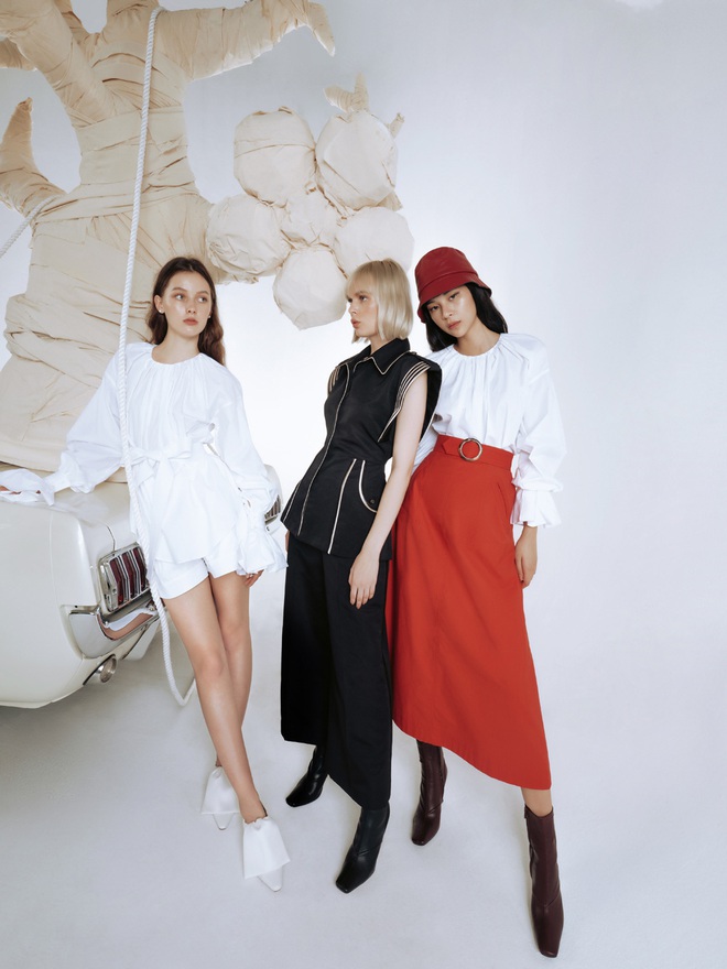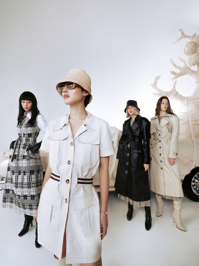 NTK còn kết hợp nhiều phom dáng khác nhau như áo măng tô, crop-top, áo chemise tay phồng cùng chân váy và quần lửng đế nhấn mạnh tính thực dụng của tổng thể. Hầu hết các trang phục xuất hiện trong BST này đều có thể được phối cùng nhau để tạo ra những bộ cánh thú vị và khác lạ, dành cho những người trẻ yêu thích tính ngẫu hứng trong thời trang.